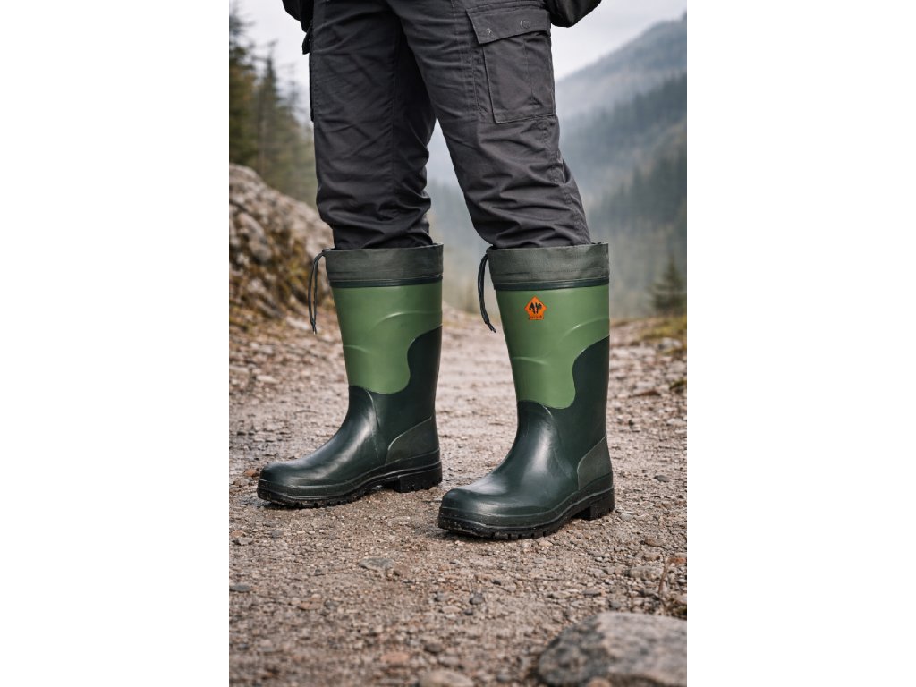 Pánske zateplené gumové čižmy bighorn VERMONT NEO sú ideálnym riešením pre daždivé a chladné počasie. Farba čižiem je zelená. Topánky sú vhodné najmä na voľný čas a poľovníctvo. Majú hrubšiu protišmykovú podrážku zaisťujúcu bezpečnosť chôdze. Čižmy sú veľmi pohodlné. Materiál je vysoko kvalitná guma zateplená neoprénom. Na zvršku je zaťahovací nadstavec na šnúrku proti padaniu nečistiť do čižmy. Poskytujú vynikajúci užívateľský komfort a to aj pri nízkych teplotách (materiál testovaný do - 15 ° C).