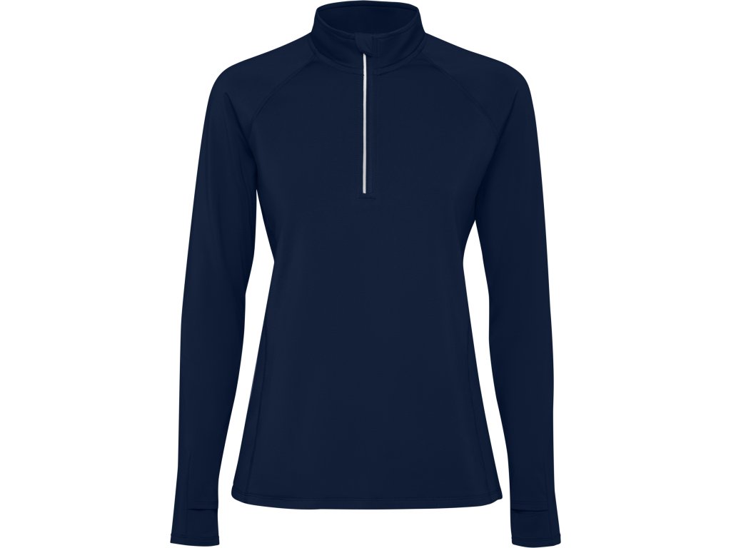 Priliehavá česaná technická mikina s raglánovými rukávmi a polovičným zipsom s obráteným dizajnom, doplnená o reflexný prvok.