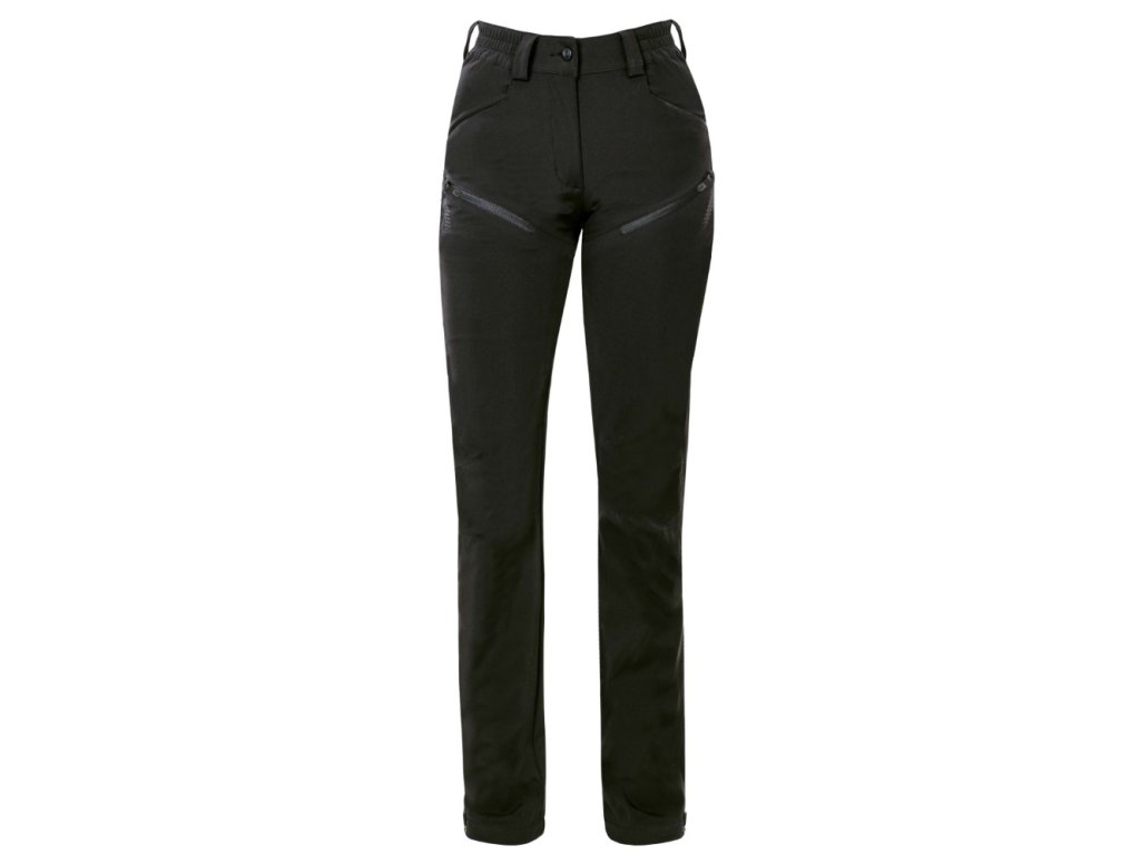 Dámske softshellové nohavice majú priliehavý strih SLIM FIT. Štvorsmerne elastický ľahký softshell ElasticTech®Flexi s membránou je vhodný aj na náročné aktivity, poskytuje vynikajúcu ochranu proti vetru, je nepremokavý, rýchlo schne a udržiava optimálnu telesnú teplotu. Vetracie zipsy so sieťovinou na vonkajšej strane stehien. Chrbát je rozdelený sedlom, 2 vrecká na zips na prednej strane, elastický, tvarovaný pás zvyšuje pohodlie pri nosení. Funkčné tvarovanie nohavíc, zúžený strih, lem nohavíc s možnosťou úpravy obvodu pomocou gombíkov, vnútorný háčik s gumičkou na zapínanie nohavíc na topánky. Dizajn je ozvláštnený 3D reflexnými potisky