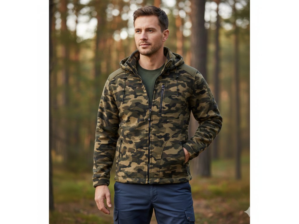 Pánska flísová mikina PREMIUM 340 HOOD camouflage