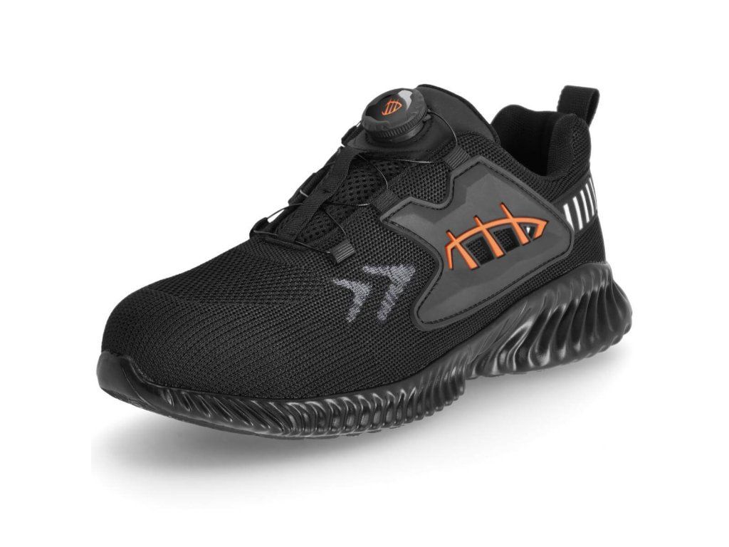 Bezpečnostná obuv TEXO-FLY LINES SPIN SB s oceľovou ochrannou tužinkou odolnou proti nárazom s energiou 200 J a tlakovými silami 15 kN so systémom šnurovania SPINON pomocou oceľových laniek a gombíka.