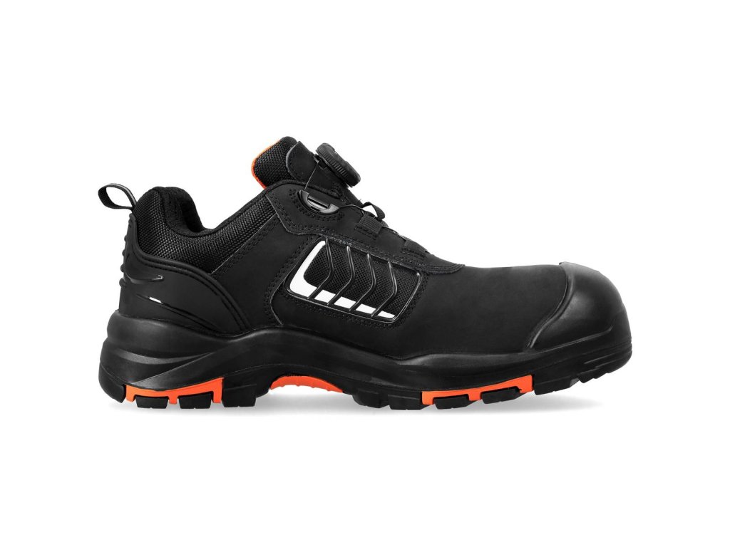 Bezpečnostná poltopánka ROCK S3L v inovatívnom prevedení so systémom šnurovania SPINPRO pomocou oceľových laniek a mechanického kolieska. Vyvýšený nástrek špičky uľahčuje prácu v kľaku a chráni obuv pred poškodením.