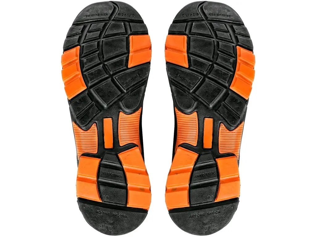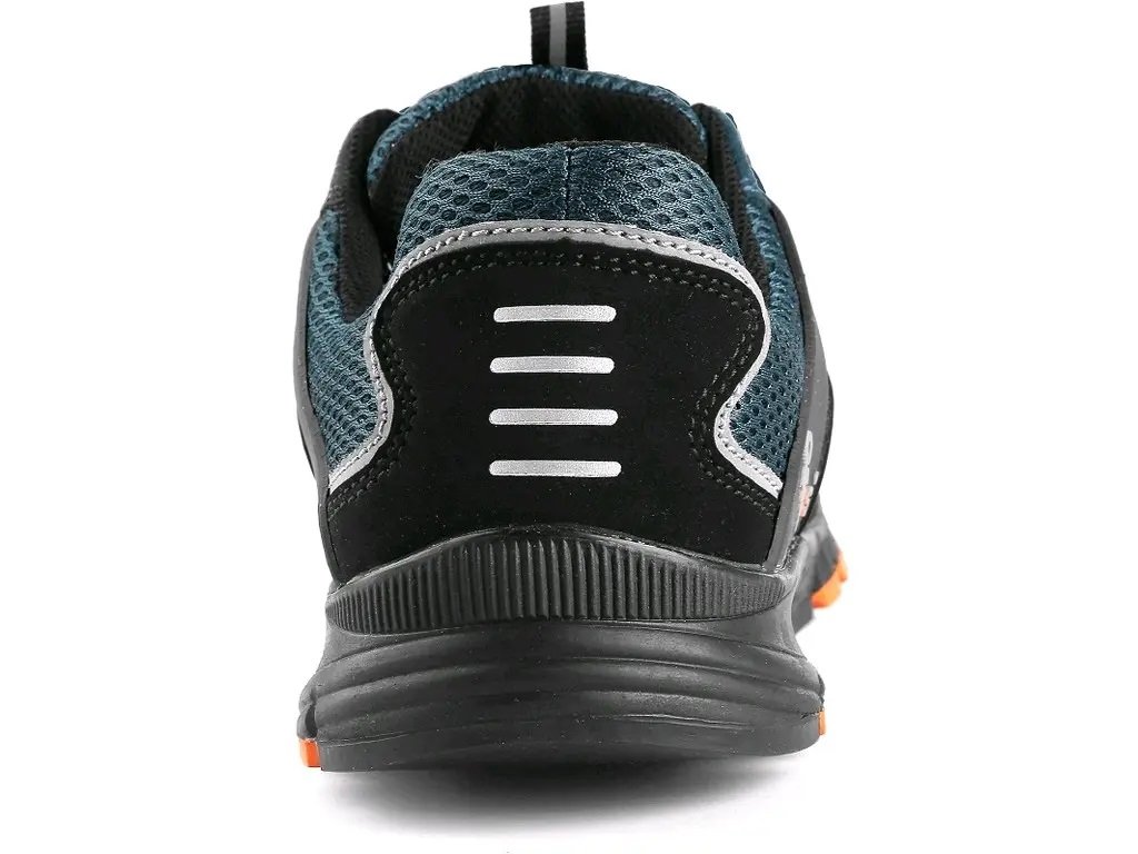 Bezpečnostná poltopánka s oceľovou špicou, reflexné doplnky. Materiál: zvršok z 1,4 - 1,6 mm hovädzej brúsenej kože kombinovaný s priedušnou tkaninou, podšívka z priedušného oderu odolnej textílie, podrážka: gumová, olejovzdorná, antistatická, protišmyková.